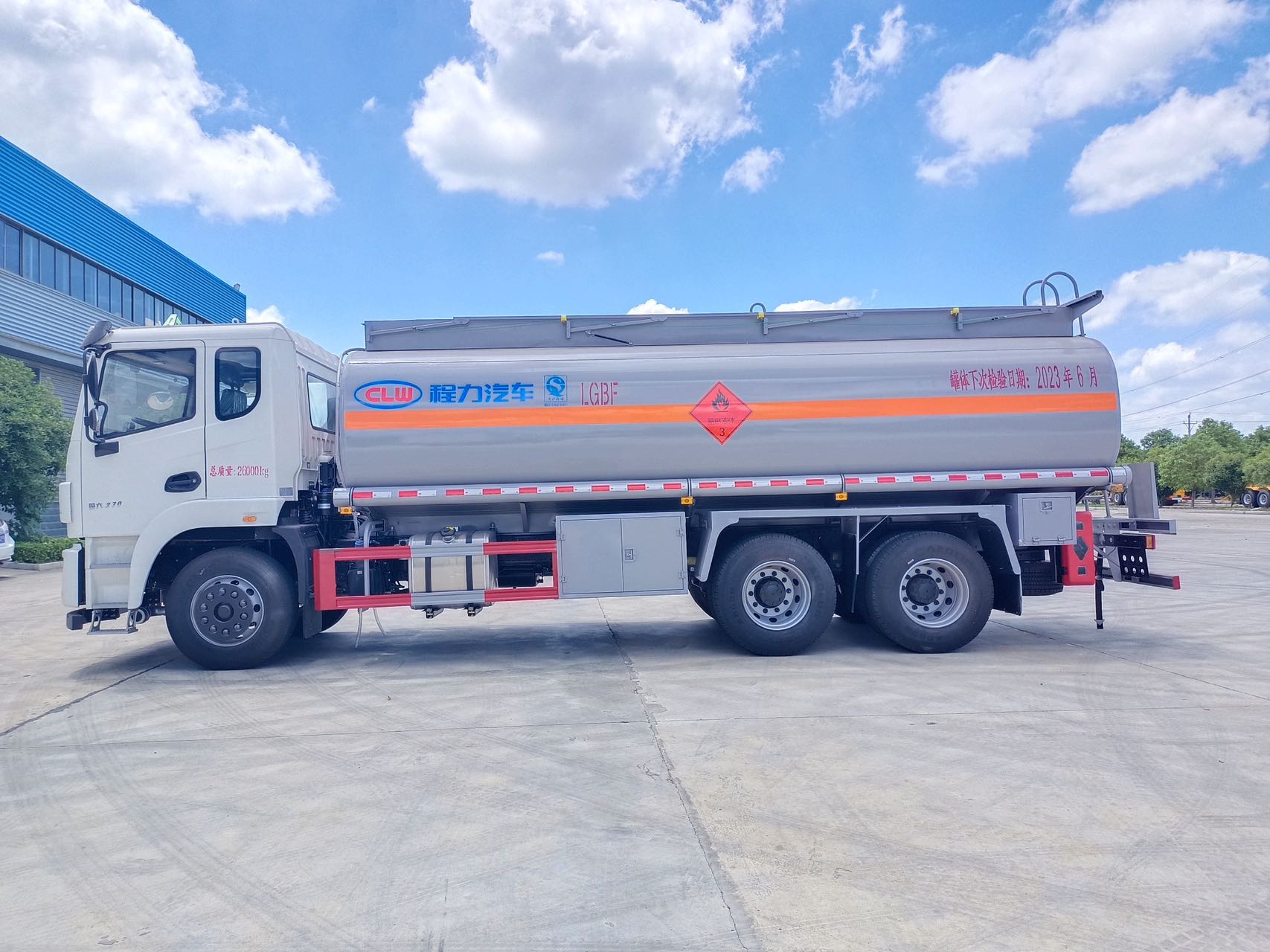 Effective volume of tank: 21.7 square, Q235 material, tank body 5mm, head 5.5mm, partition 5mm, single bin, tank top two Jialong European standard tank mouth, 1 new regulation voice alarm subsea valve, single bin with a set of Jialong lower oil (oil discharge valve, oil and steam recovery, anti-overflow detector rod, anti-static coil), With Shandong Shenwei 80-60 special oil pump (can be pumped in and out) , rear climbing ladder, with manual guardrail, toolbox, rear bumper, side guardrail for carbon steel one-time molding.