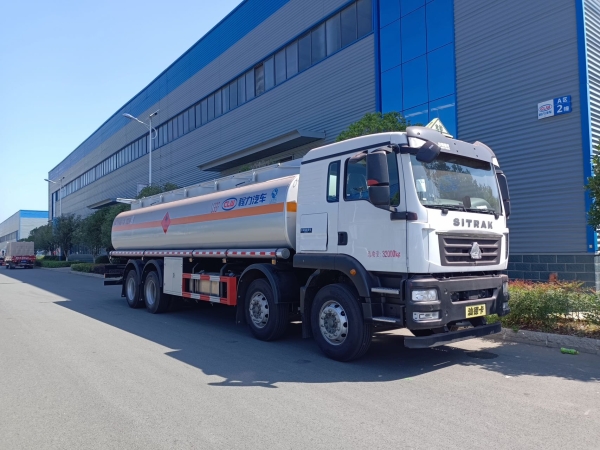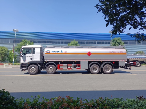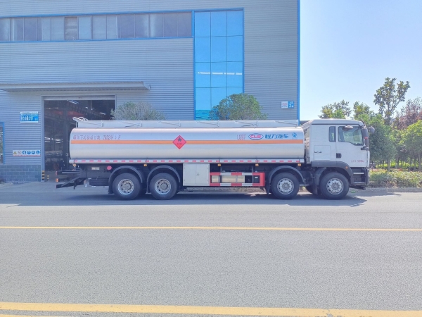tank top with two stainless steel European standard manhole, 1 sea valve with voice alarm, 1 set of Jialong brand fuel charging system (oil discharge valve, oil and steam recovery, anti-overflow detector rod, anti-static coil), with 80-60 special stainless steel oil pump (pump in and pump out), 4" stainless steel pipe and 3" stainless steel export, all valves are stainless steel, (rear ladder, with manual guardrail, toolbox, rear bumper, side guardrail).