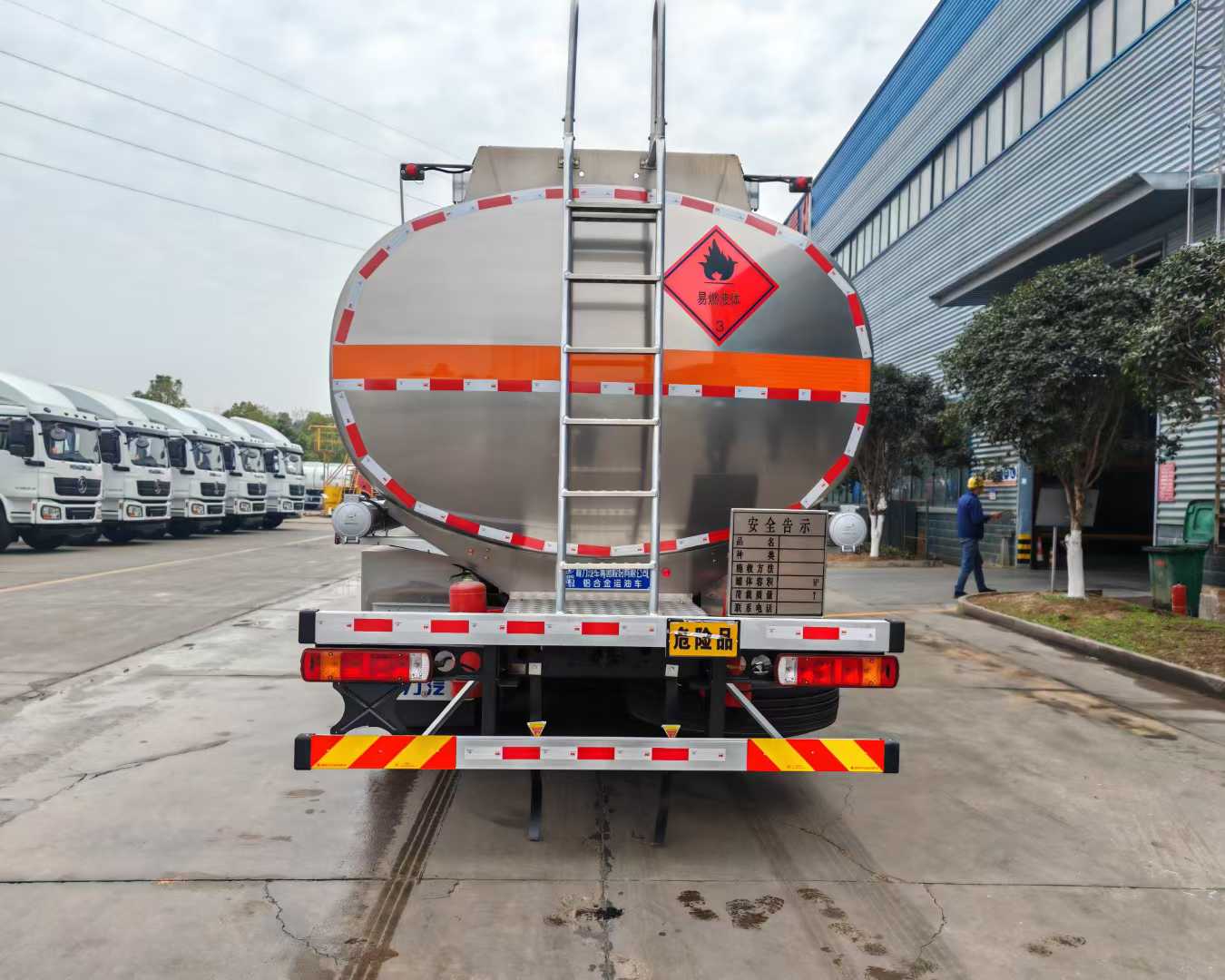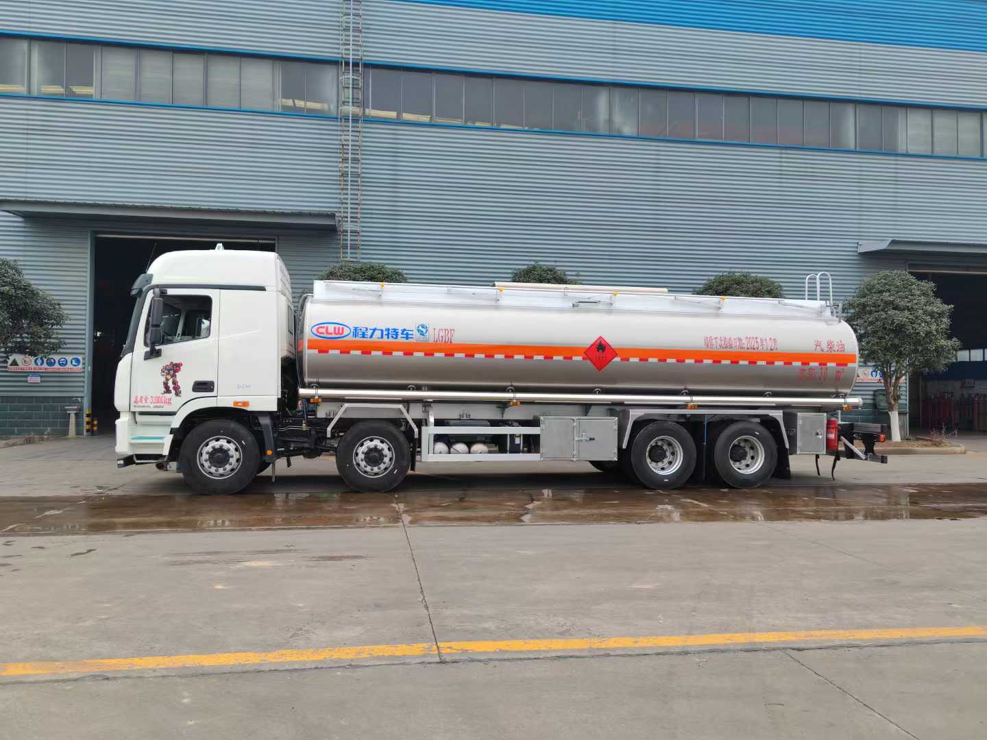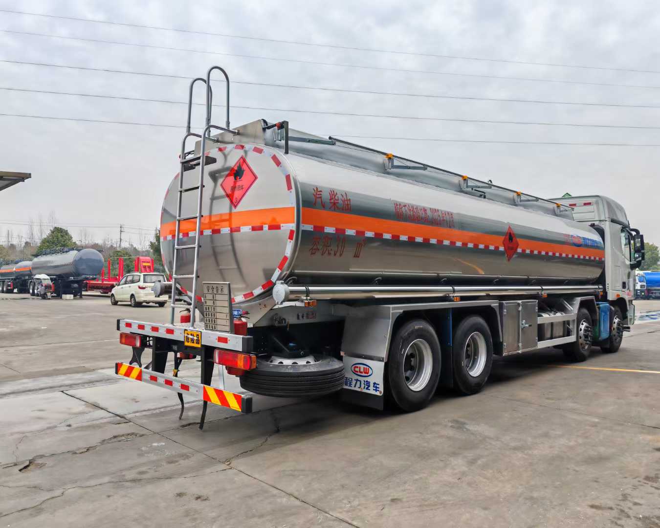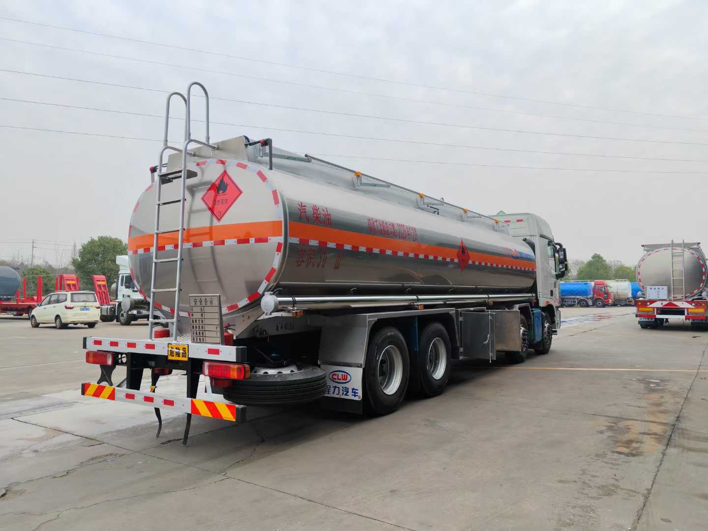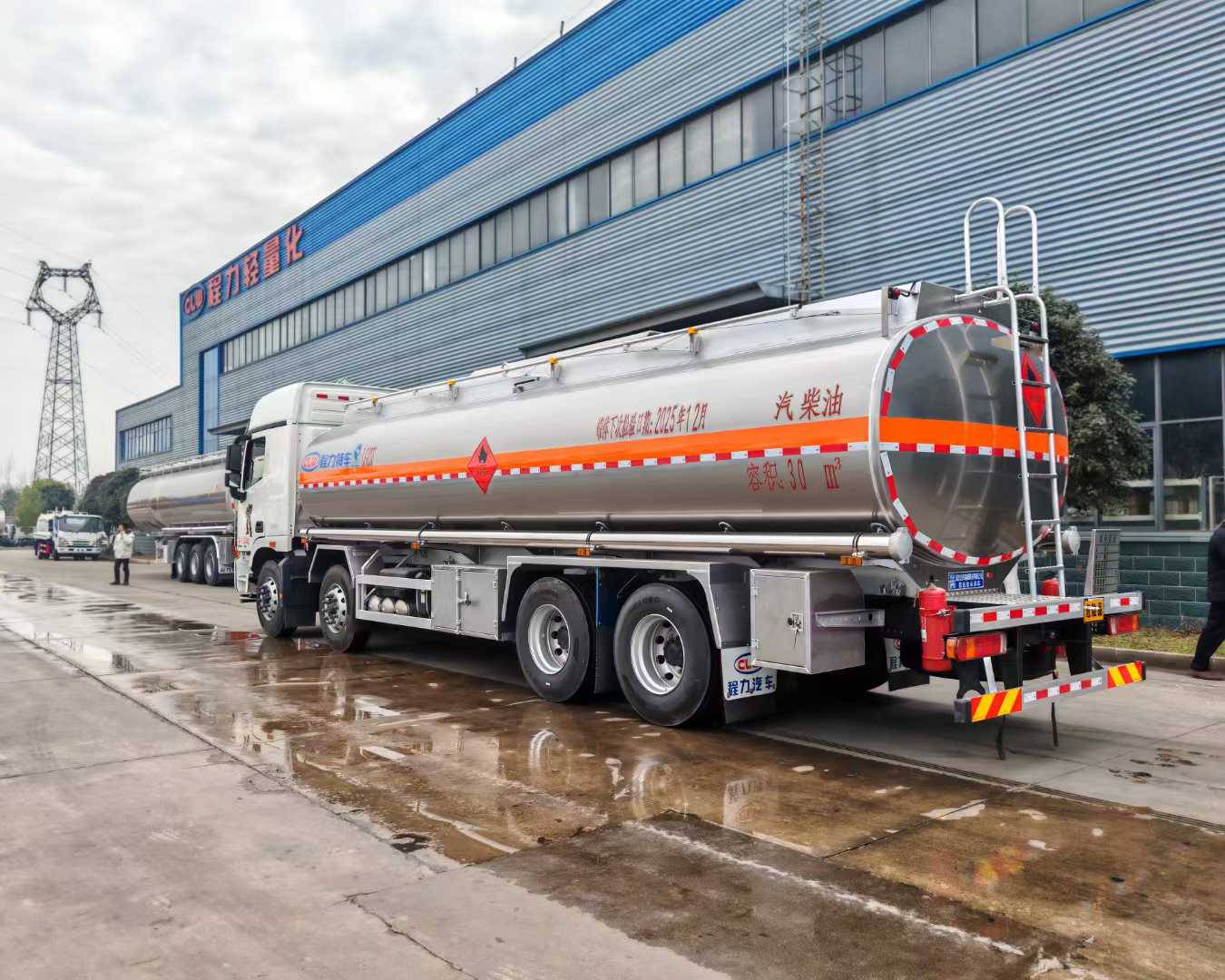 Effective volume of the oil tank: 30m3. It is made of 5182 aluminum alloy plates. The tank body, end caps and partition are all 6mm thick. It is a single compartment. There are two standard tank openings on the top of the tank, one new intelligent closing sea bottom valve, one set of bottom loading oil equipment (unloading valve, oil vapor recovery, anti-overfill probe, anti-static reel), equipped with a 80-60 dedicated oil pump (can be pumped in and out), rear ladder, manual guardrail, toolbox, rear bumper and side guardrail are all made of aluminum alloy plates, manufactured in accordance with new standards. Other standard configurations of other manufacturers are included. A tank body inspection report, chassis certificate, vehicle certificate and invoice for registration are provided.