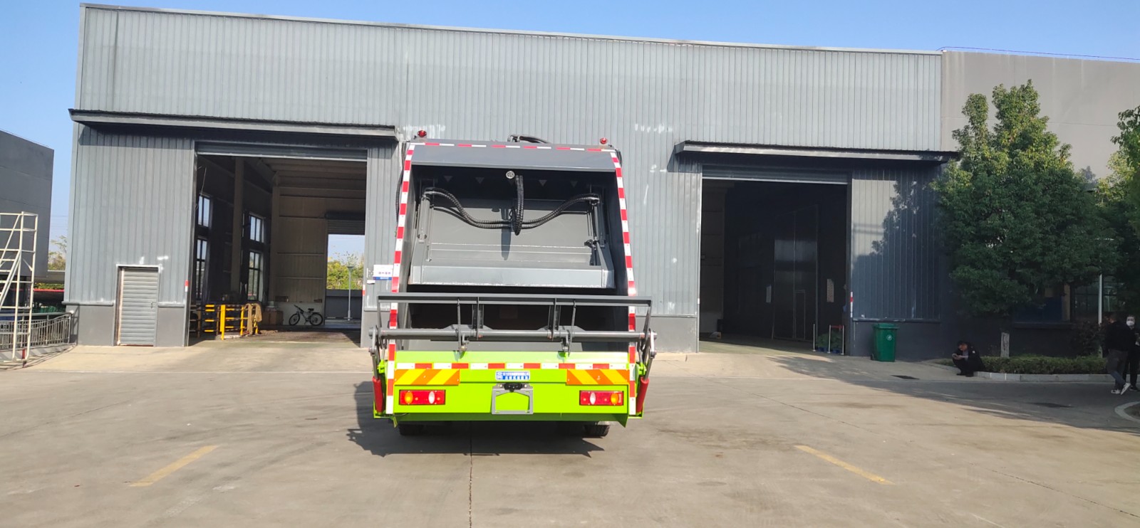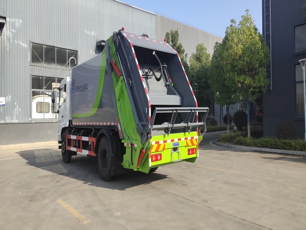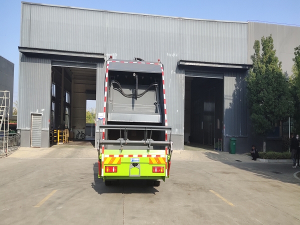 4. The garbage compactor truck electric hydraulic configuration: Zhejiang Jiasan repuller, Hefei Anhui liquid gear pump, Wessenboler multi-way valve, balance valve, compression valve, stop valve, Liancheng hydraulic cylinder (all cylinders after tempering treatment, with buffer), Guangzhou Tianhe high pressure tubing, global steel pipe, hydraulic oil tank with 3 times overstress net, all cylinder shaft pins after quenching treatment, increase hardness is not easy to bend and break, CAN survey bus smart screen one-button operating system, with wireless remote control, system programs can be set on the smart screen according to the user's requirements, can set the automatic operation conversion time, throttle control size, with automatic fault detection, alarm prompt function.