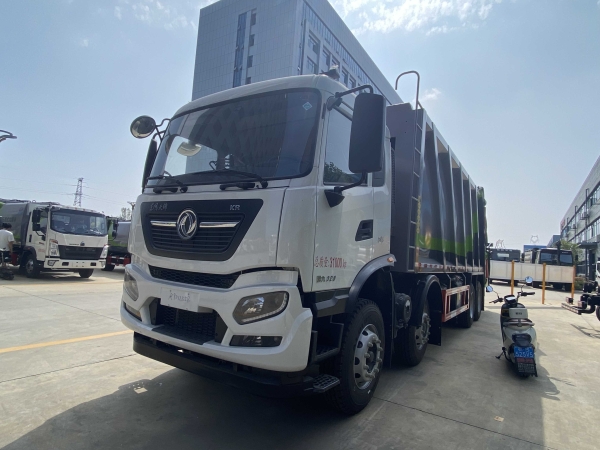 The garbage compactor truck adopts Dongfeng Tianjin flagship chassis, 1995+4000+1350 (mm) wheelbase, Kangji engine 320hp, front axle 4.5T×2/ rear axle 11T×2, 11R22.518PR tires, Shaanxi gear 10-speed transmission, Dongfeng original factory air conditioning, 280L aluminum alloy large fuel tank, remote control key, central control door lock, electric glass, air bag seat, Travel recorder.