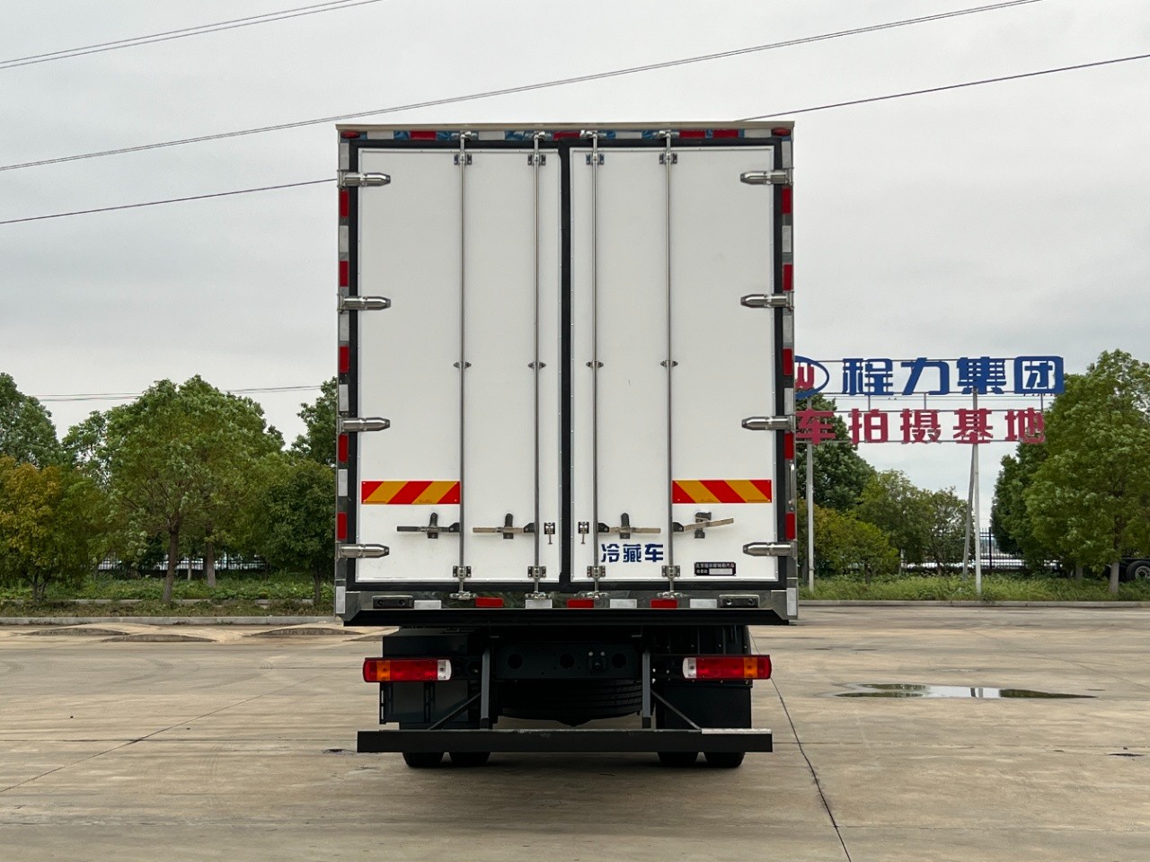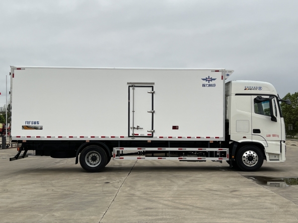 (1): The refrigerated truck adopts a steel-wood structure, with thermal break insulation technology, a galvanized steel tube frame, and high-quality fiberglass reinforced plastic (GRP) selected for both the interior and exterior (non-light-absorbing, good heat insulation, high hardness, and strong oxidation resistance). The middle is filled with 8 cm thick XPS extruded polystyrene boards. High-strength adhesives and a positive pressure machine are used for hot pressing and forming (an automatic gluing and pressing machine is adopted, which can complete gluing and pressing in one go, ensuring uniform gluing, no bulging, and rapid and efficient plate output).