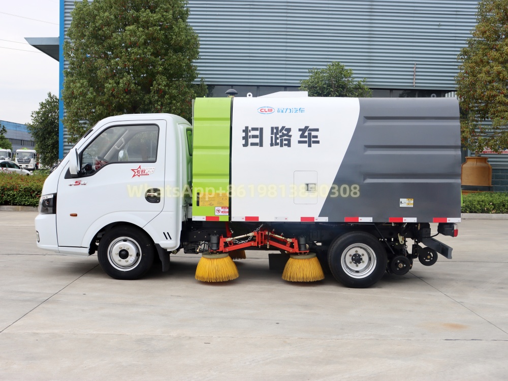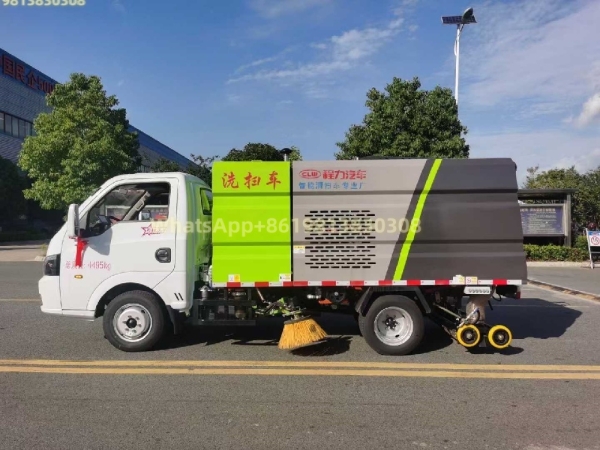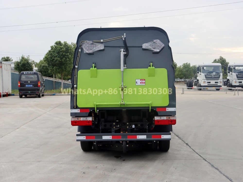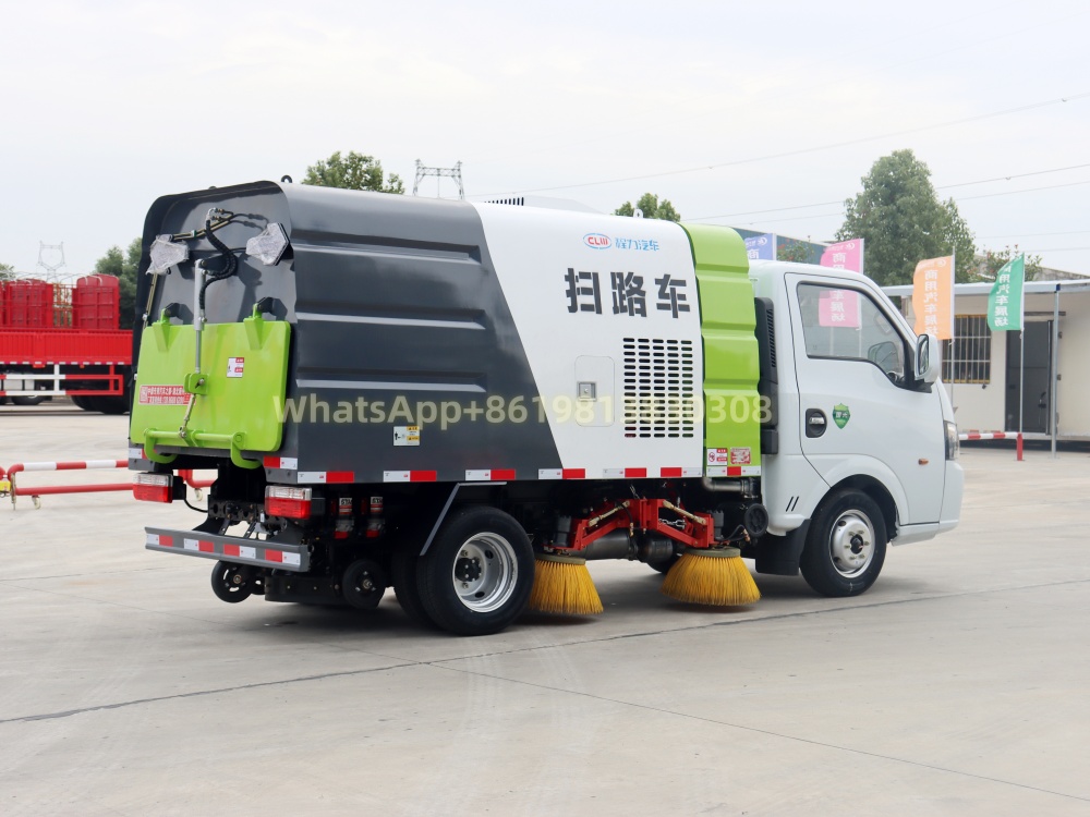 It uses Yunnei 57 horsepower auxiliary engine, 5.0 high-pressure centrifugal fan, 50L high-pressure pump, Xiamen Nanchao automatic clutch, 1.5 cubic clean water tank carbon steel electrophoresis, 1.8 cubic stainless steel trash can. Center-mounted left and right vertical sweepers, rear suction cups, and a high-pressure gun rotating swing arm installed on the top of the box. The clean water tank has a volume of 1.5 cubic meters and the trash can has a volume of 1.8 cubic meters. A low water level alarm system is installed in the clean water tank, and a sewage tank self-overflow system is installed inside the trash can. The maximum operating time for a single full-load operation can reach 35 to 45 minutes. 9 auxiliary engines drive the fan and high-pressure pump to start working, combining high-pressure water spraying and suction sweeping.