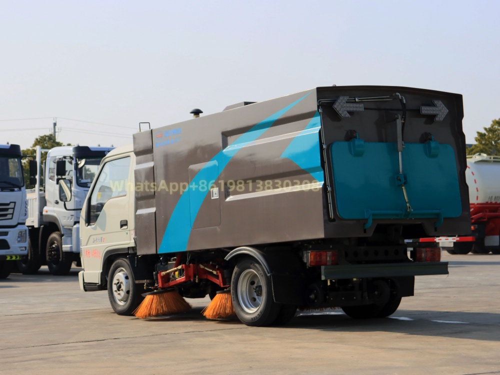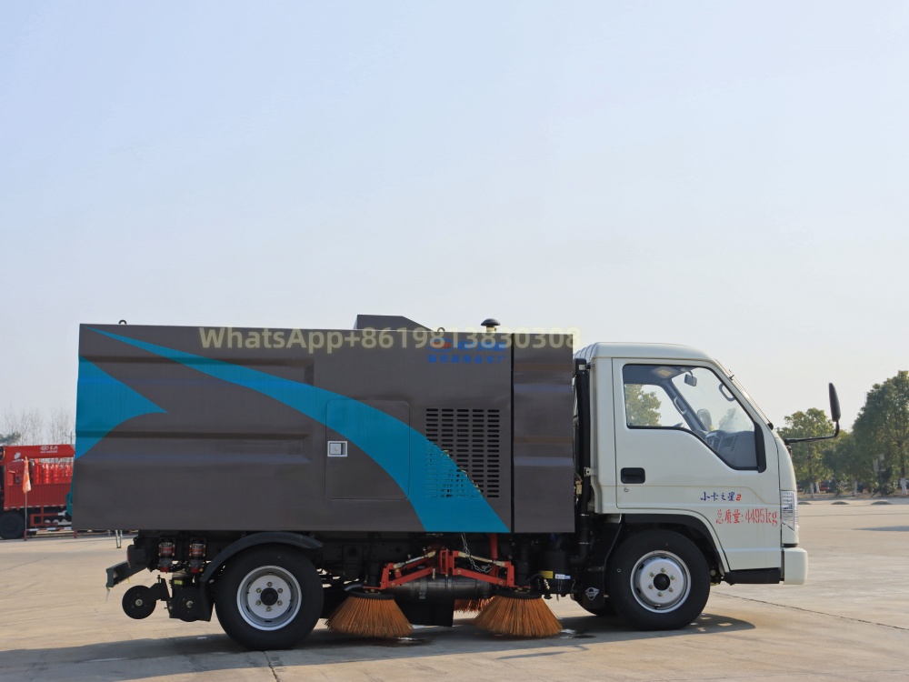 Yunnei 57HP auxiliary engine, automatic clutch, maintenance-free blower, Hyprius solenoid valve group, GTM high-pressure water pump. Hyprius hydraulic cylinder, computer one-key control. Stainless steel trash can, carbon steel anti-corrosion water tank, maximum cleaning width 2000mm, two sweeping discs in the middle, and suction cups at the rear. The vehicle is equipped with high-pressure washing function, and the whole vehicle water spraying system consists of high-pressure gun, suction cup water spraying and suction cup left and right water spraying system.