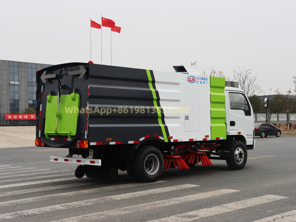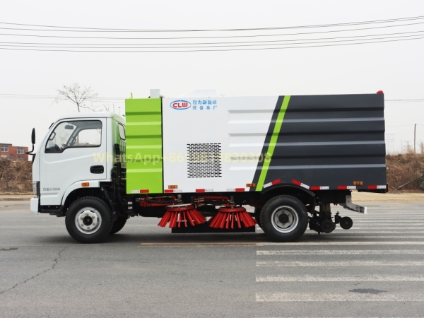 Yunnei 57HP auxiliary engine, automatic clutch, maintenance-free blower, Hyprius solenoid valve group, GTM high-pressure water pump. Hyprius hydraulic cylinder, computer one-key control. Stainless steel trash can, carbon steel anti-corrosion water tank, maximum cleaning width 2000mm, two sweeping discs in the middle, and suction cups at the rear. The vehicle is equipped with high-pressure washing function, and the whole vehicle water spraying system consists of high-pressure gun, suction cup water spraying and suction cup left and right water spraying system.