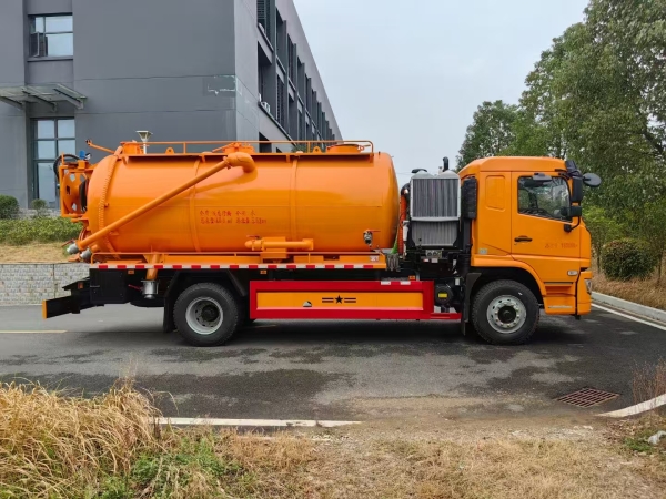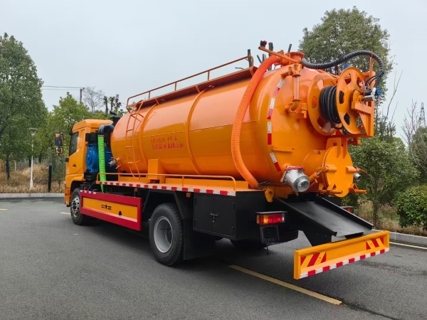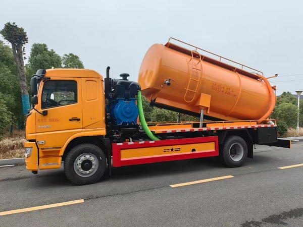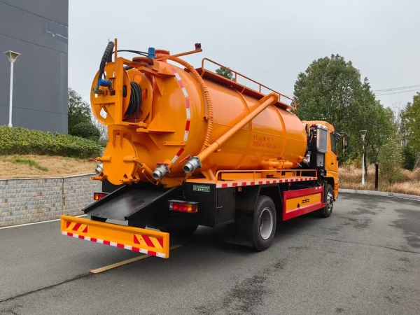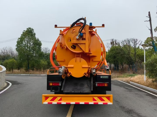 The high pressure cleaning and suction truck total tank volume is about 15m3 which includes 4m3 clean water tank and 11m3 sewage tank volume. The tank thickness is 8mm.