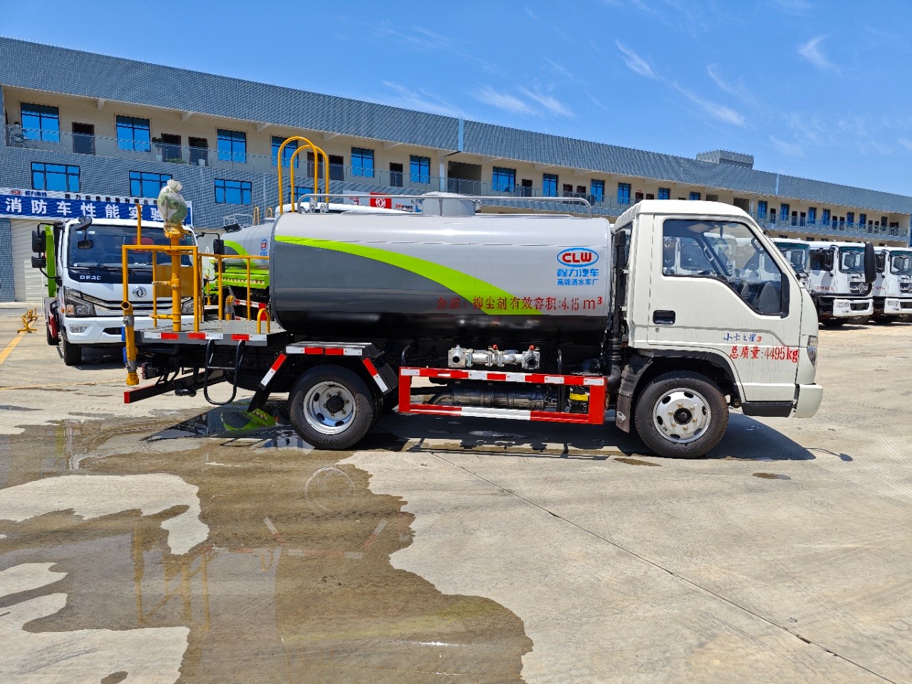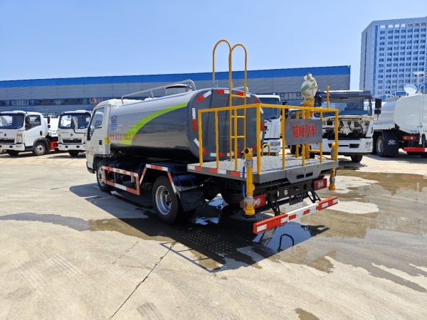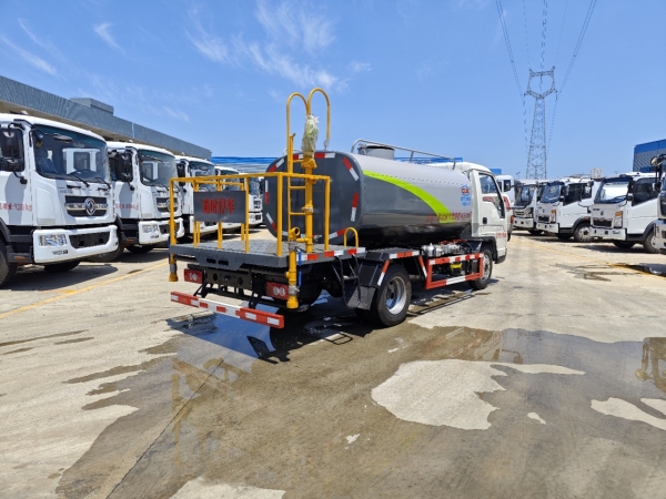 The water tank truck has special function such as front spraying, side spraying, rear spraying, and fire-fighting usage water cannon. The water cannon can spray water as different requirement, the water sprayed can be adjusted to heavy rain, small rain, fog status and columnar status.