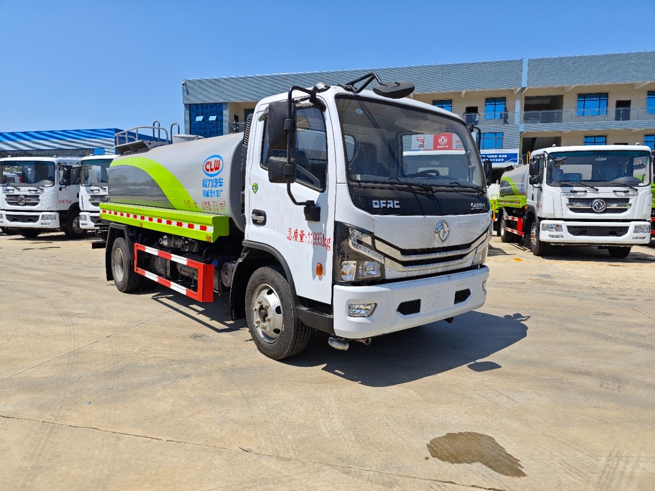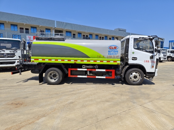2. The water tank truck adopts Dongfeng Doric chassis, the wheelbase is 3800mm. It is equipped with Yuchai 165hp engine, Wanliyang 6 gears transmission box, the front axle loading capacity is 2.7T, the rear axle loading capacity is 5.5T, the tyre size is 245/70R19.5. Other configurations such as electric window and door, central lock, ABS, steering system assisting, air break are standard configurations.