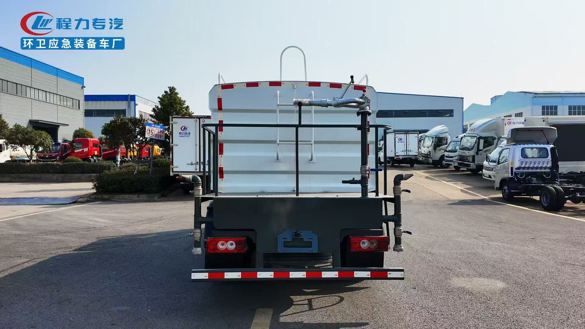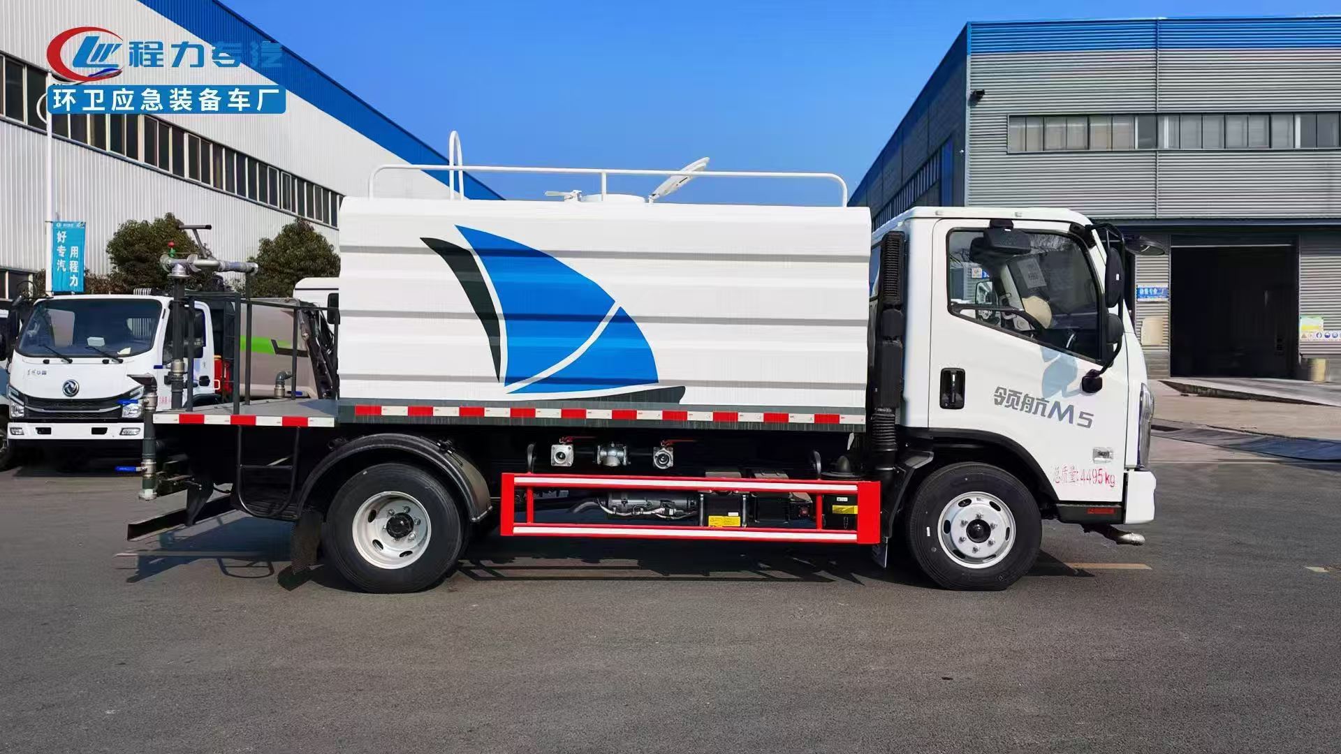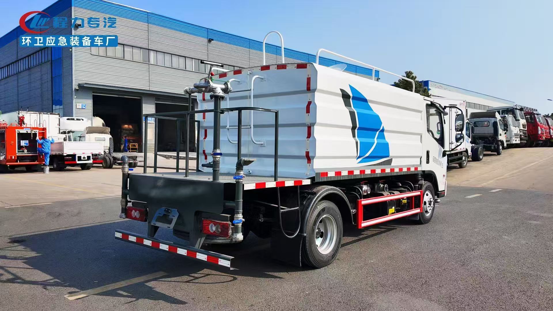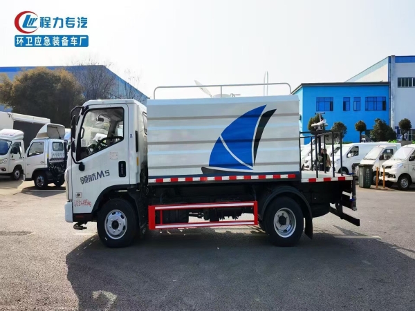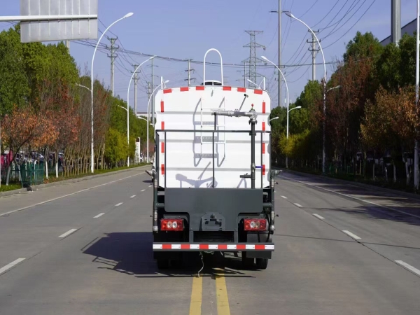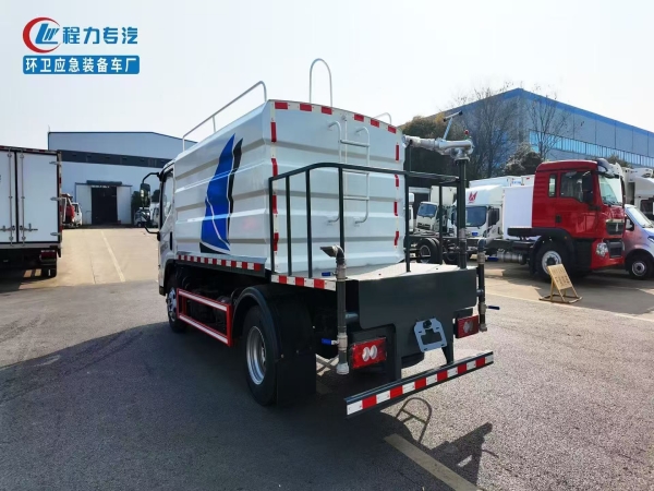 The FOTON 7m3 water sprinkler truck adopts Q235 material. Water pump model: 40/50. The tank is secured with four saddle bolts. The tank has a butterfly-shaped wave-breaking plate inside.